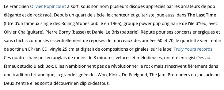 July 2019 – La Vie – Popincourt in great company with other French Pop artists (French)