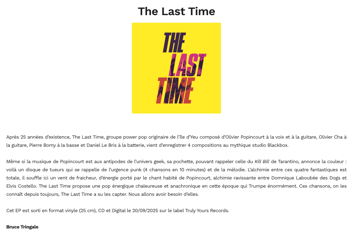 October 2025 – Pop News – The Last Time (French)