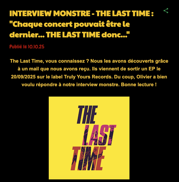 October 2025 – Les Monstres Sacrés – The Last Time – Interview (French)